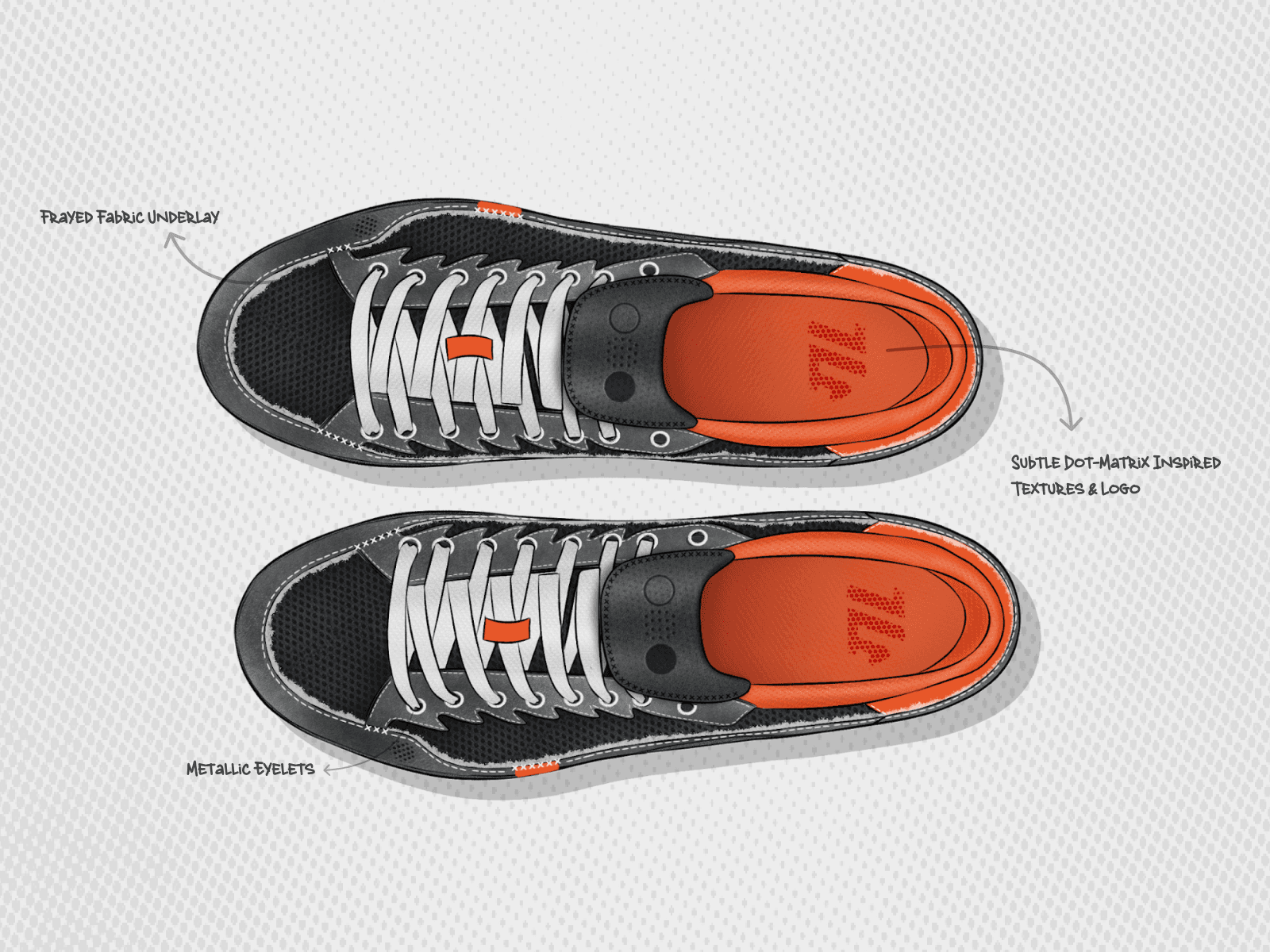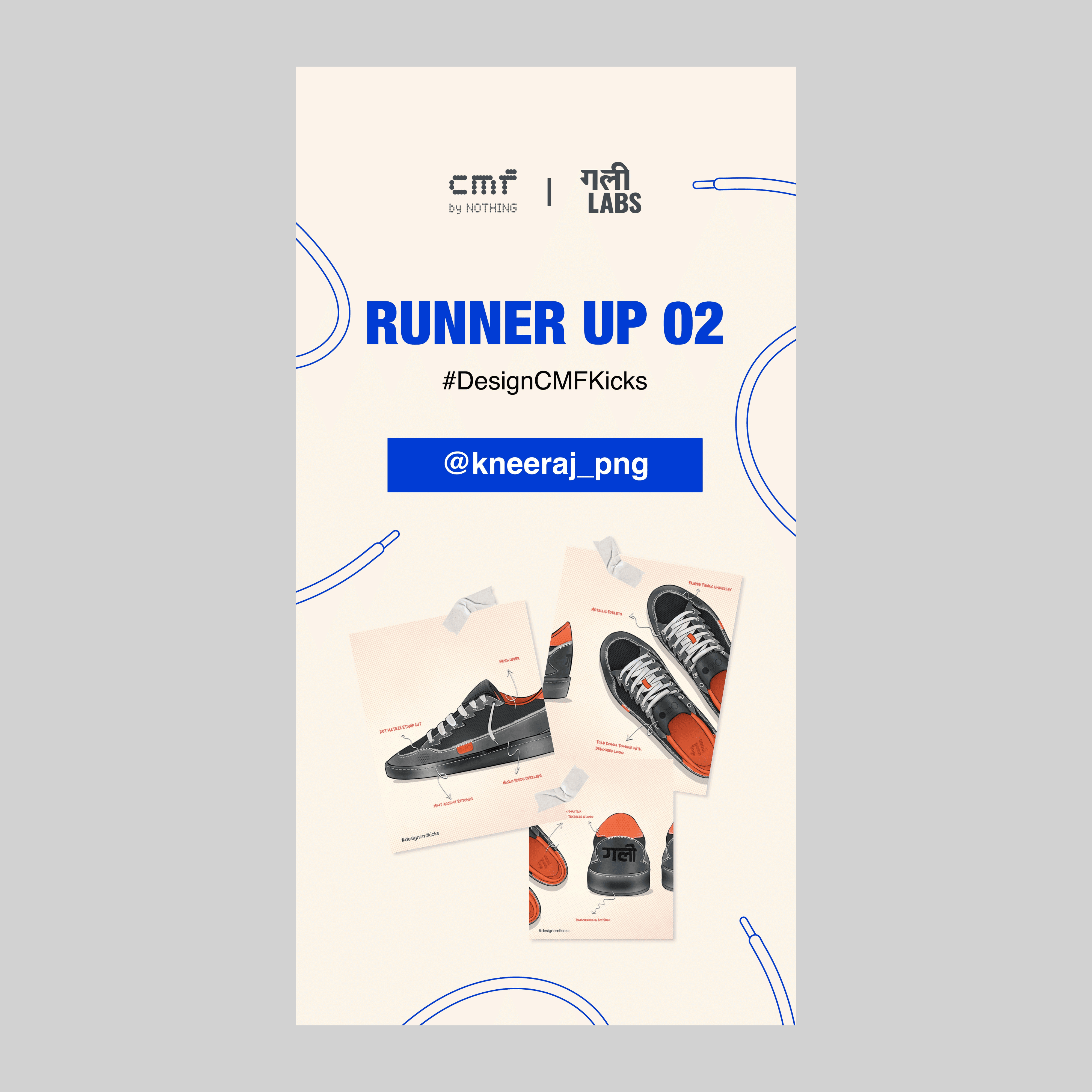 I studied the CMF Phone 2 Pro's design & extracted visual cues from it. I tried to convert each element of the phone - from it's dualtone back panel to it's raw design aesthetic into a cohesive design language for the shoe.